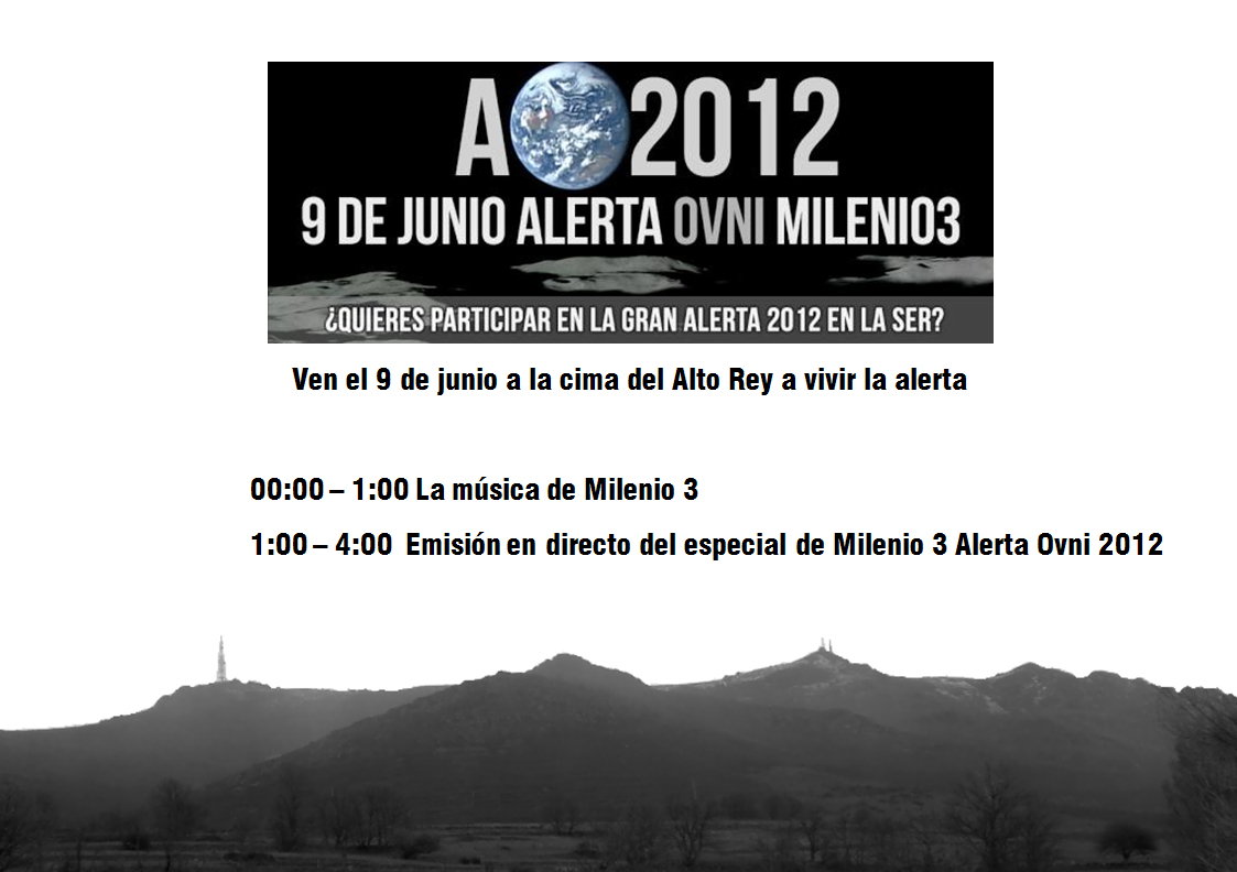 - Especial "Alerta ovni" de Milenio 3 retransmitida desde el Alto Rey. 2012