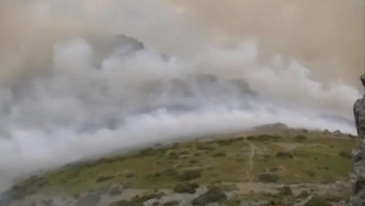 Poco a poco según aumenta la gravedad del incendio se van sumando nuevos medios, en primer lugar el helicóptero “Koala” de la base El Serranillo y, más tarde, los dos Bell del BRIF de Daroca, aun así, el fuego alcanza los 1800 m del Alto Rey, y entre las rocas, pasa a la cara Norte de la montaña. En la cumbre, coronada por una ermita templaria solo hay un equipo de Televisión Guadalajara, que graba el “salto” a la otra ladera.